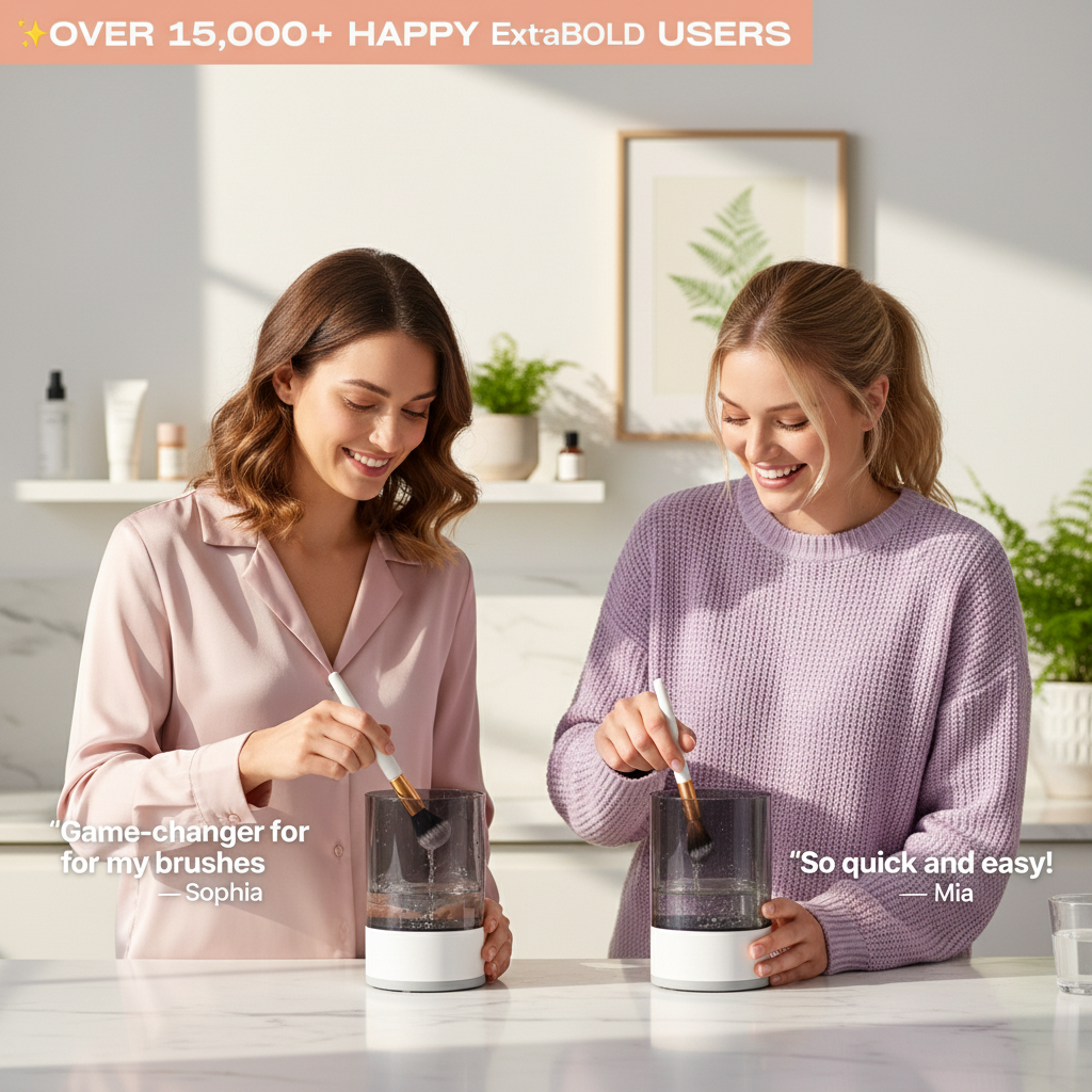 Watch as the Electric Brush Cleaner removes stubborn makeup residue effortlessly. See before-and-after shots of brushes restored to like-new condition. No chemicals required, just fast, effective cleaning.